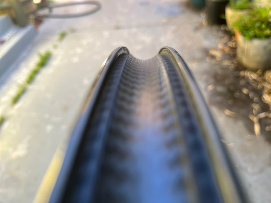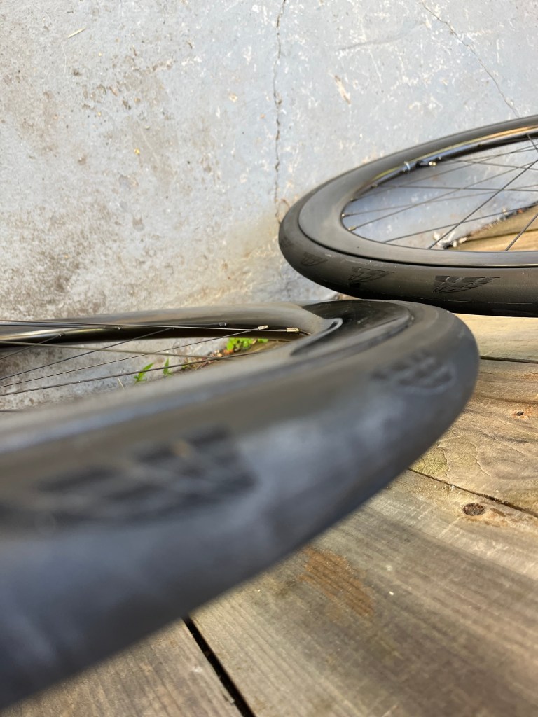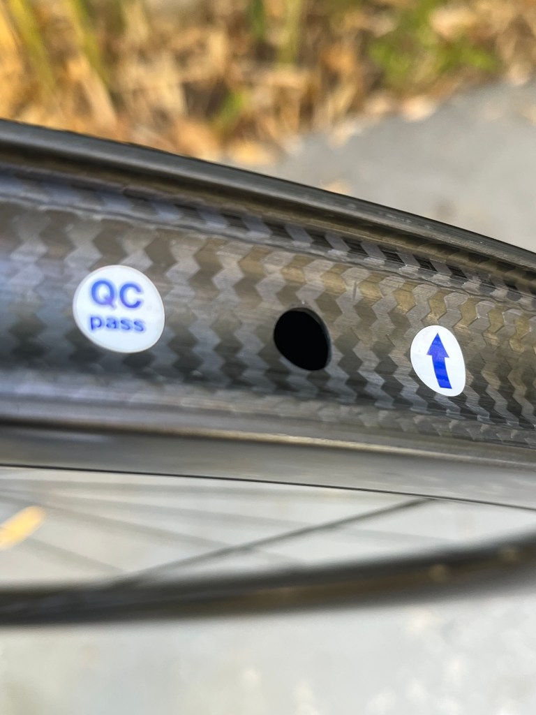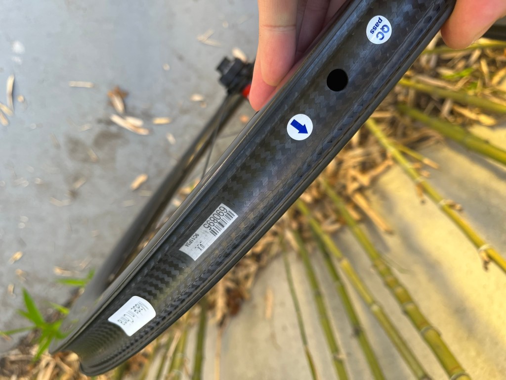 The rims look to be very solid. The fairing is solid and no imperfections could be found on the outside. There are some wheels in which you can feel how thin the side of the rim is. That is not the case for these. The holes that were drilled look to be very clean. These rims were not drilled for nipple access holes. Even though it will make nipple replacement a little more challenging, the rim will be just a little more stiff. The finish is also a unique carbon shimmer.