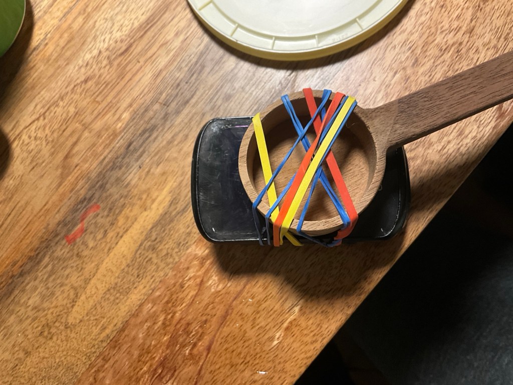 Used what there was lying around to press the screen in place while the epoxy hardens.